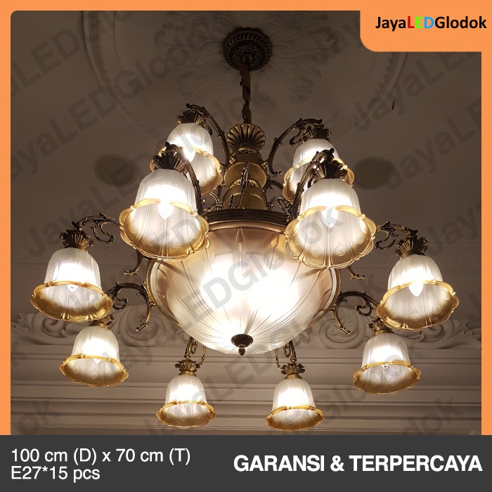 Lampu jenis ini biasanya digantung di ruang tamu. Lampu untuk iluminasi atau pijar total. Rangkanya yang terbuat dari besi berkualitas tinggi membuatnya sangat awet dan tidak mudah.